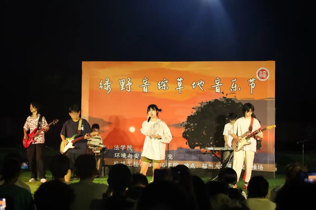 当暮色为草场披上墨色轻纱,音符便成了最耀眼的星光。这场“绿野音综草地音乐节”,是福州大学校园里一场关于青春、热爱与艺术的盛大狂欢,每一个节拍都在铜盘校区的草场上烙下滚烫的印记。9月29日,由法学院、环境与安全工程学院、机械工程及自动化学院承办的‘绿野音综’音乐节在铜盘操场盛大举行。活动邀请了数千听众并与其进行欢乐互动为广大学子送上了秋日的第一份清爽。