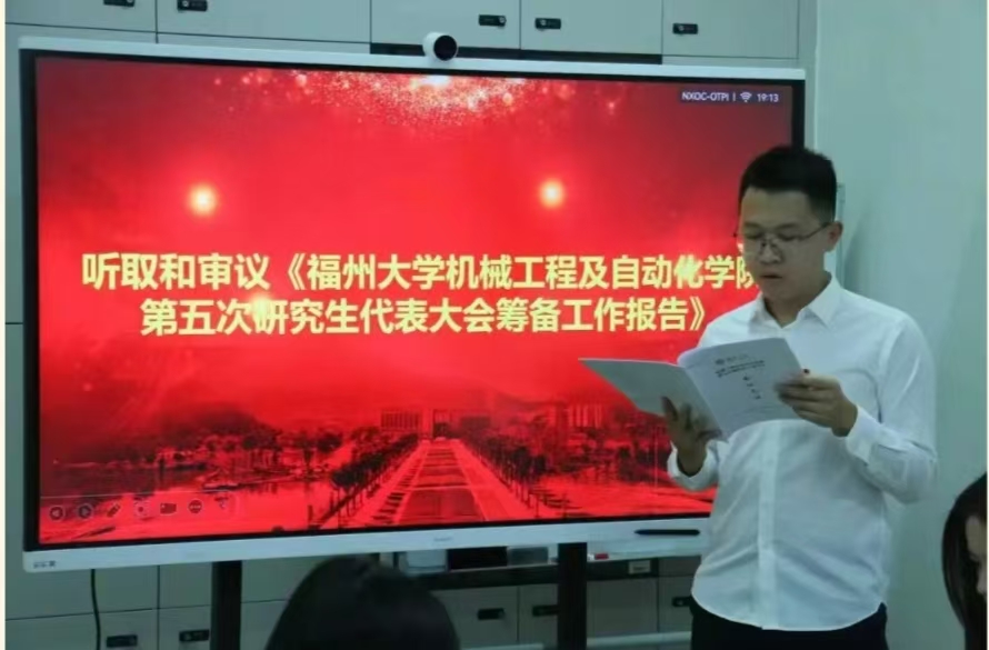 会议中,学生代表们认真履行职责,按照大会议程安排,分别听取和审议通过了《福州大学机械工程及自动化学院第七次学生代表大会筹备工作报告》、《福州大学机械工程及自动化学院第五次研究生代表大会筹备工作报告》等文件。