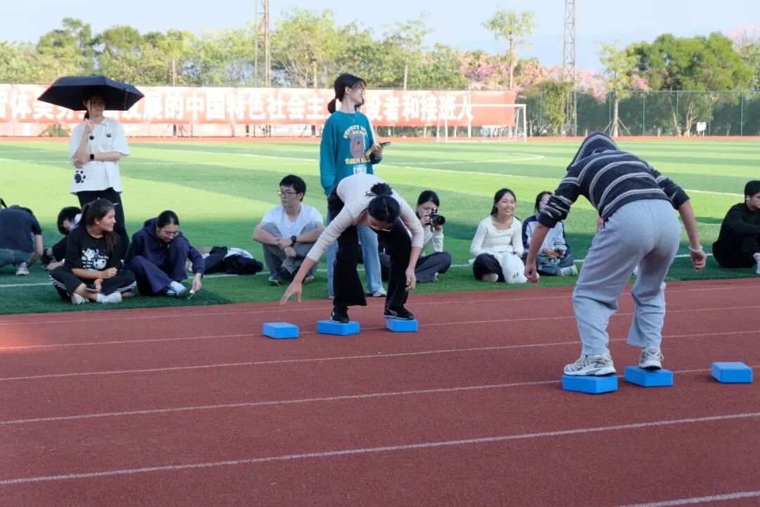 平衡感与策略力的双重较量,选手们手持道具垫步步为营。有人稳扎稳打筑牢每一步,有人巧规划线灵活跨越,围观同学的齐声“加油”与成功进阶时的欢呼,让挑战满是温情。