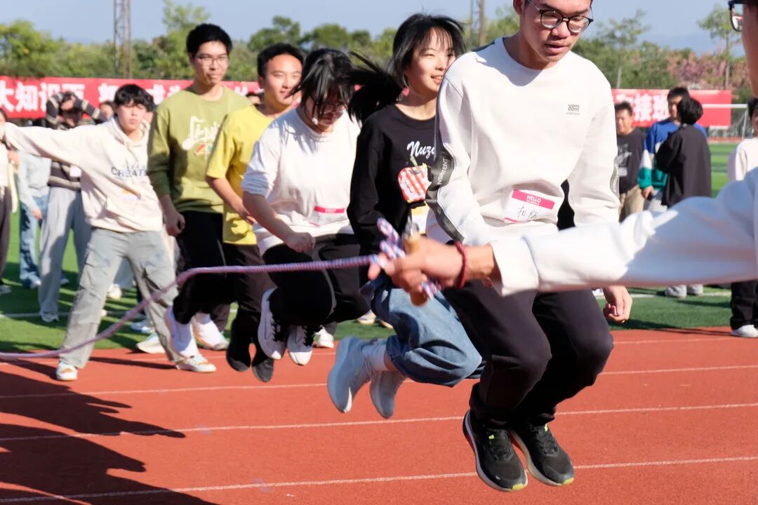 长绳翻飞划出灵动弧线,队员们眼神交汇便知起落节奏,多日磨合的默契在绳起绳落间尽显。即便偶尔“卡壳”,相视一笑便能快速调整,最终全队相拥欢呼的画面,是团结最鲜活的诠释。