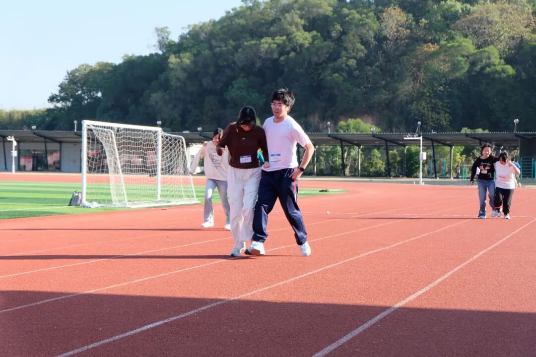 “一二、一二”的整齐口号响彻赛道,相邻脚踝紧紧相连的搭档,从步履蹒跚到同步冲刺。有人放慢脚步迁就队友,有人伸手稳住失衡的搭档,冲线时的气喘大笑与击掌雀跃,让情谊随阳光一同升温。