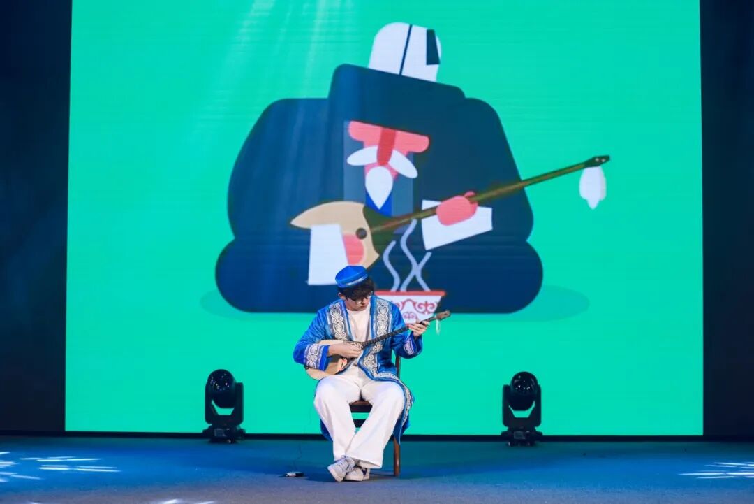 千年古韵传承文化精髓,民族乐器奏响时代新声。海沙尔同学用冬不拉深情演奏《adai midi》,冬不拉的琴弦在指尖流转,清脆悠扬的乐声缓缓诉说着跨越千年的古老故事,而机械青年的创新演绎,为这传统韵律注入了蓬勃生机。