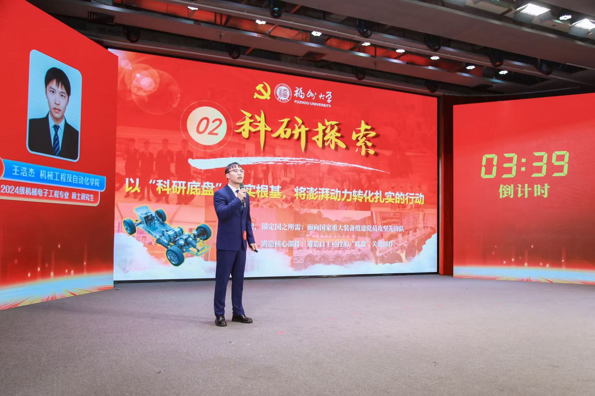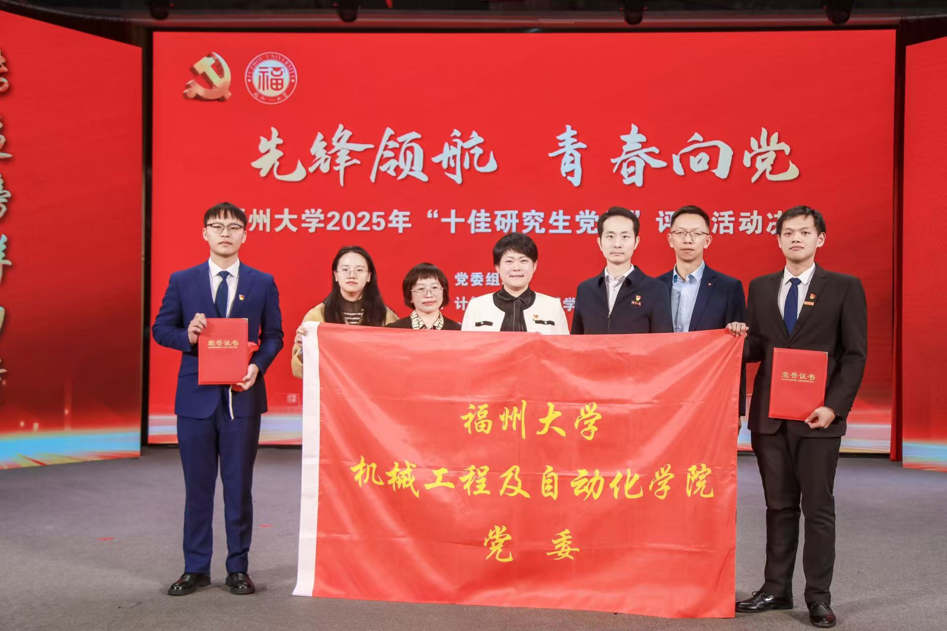 12月12日,在“先锋领航 青春向党”福州大学2025年“十佳研究生党员”评选活动决赛中,我院2022级博士研究生林嘉欢获“十佳研究生党员”称号,2024级硕士研究生王浩杰同学获“十佳研究生党员”提名奖。