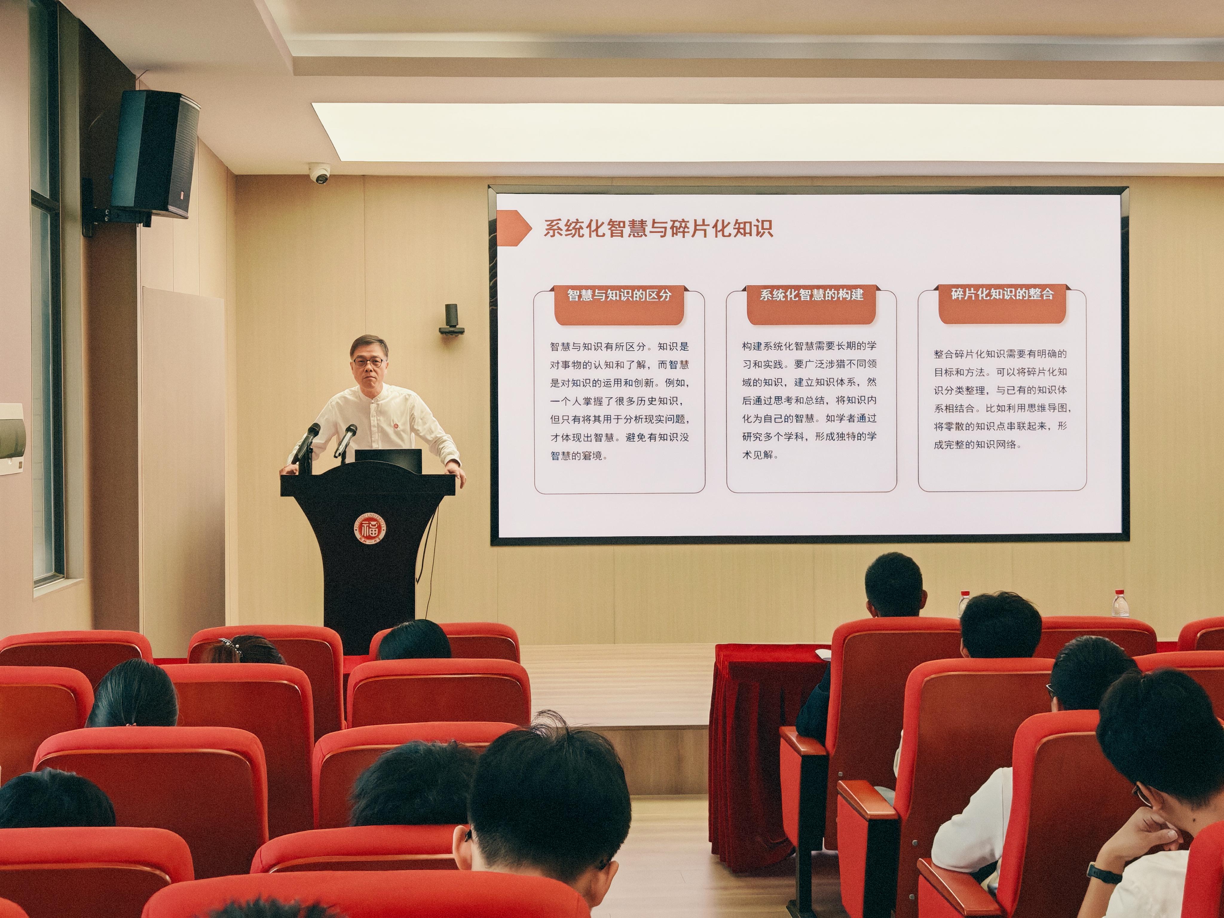 讲座最后,孔海钦以“最美的记忆总在深刻感受之后的内心窃喜”寄语在场同学,希望大家从中华优秀传统文化中汲取智慧,在求学之路上不断提升综合素养。