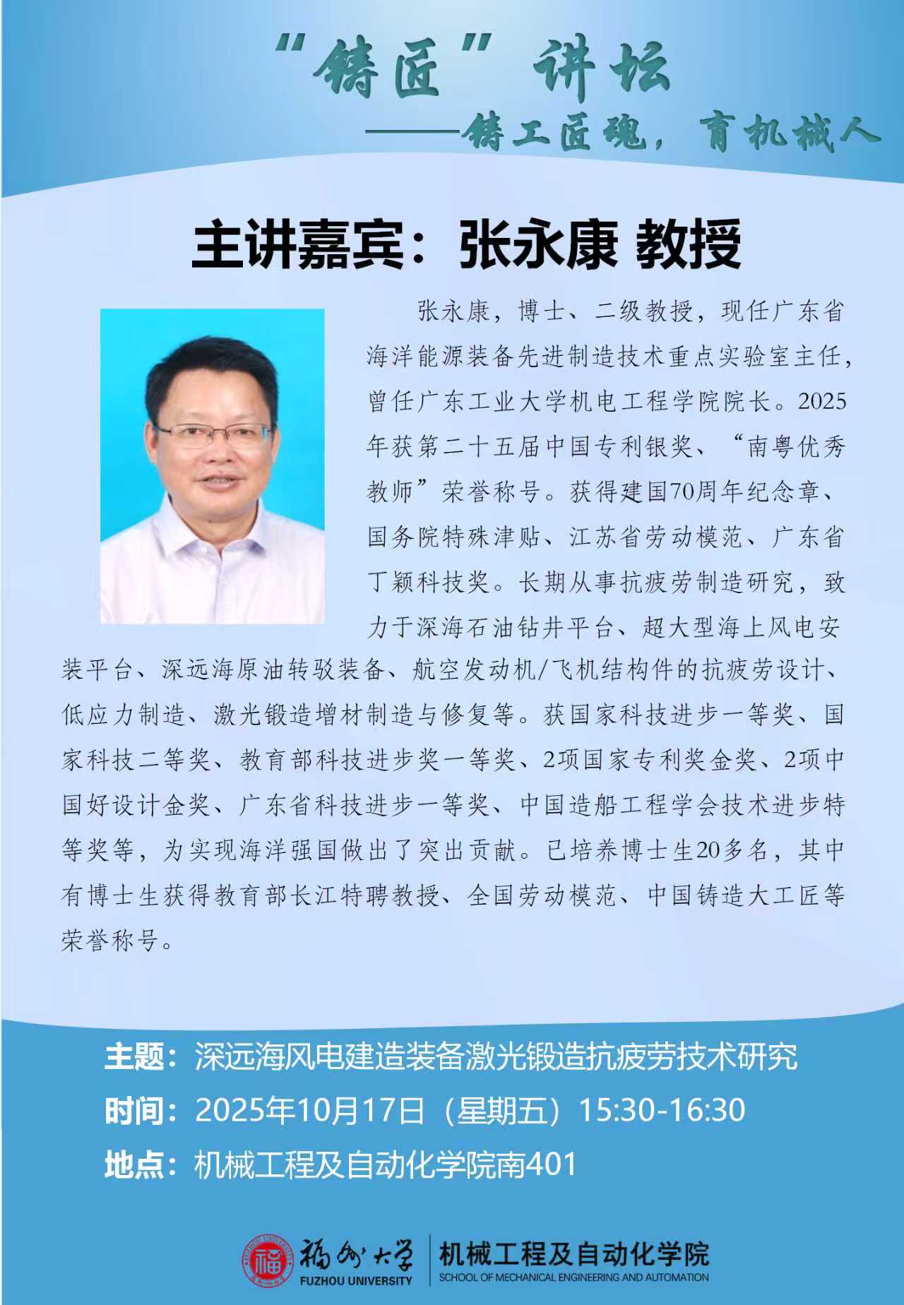 “铸匠”讲坛 ——铸工匠魂,育机械人(深远海风电建造装备激光锻造抗疲劳技术研究)