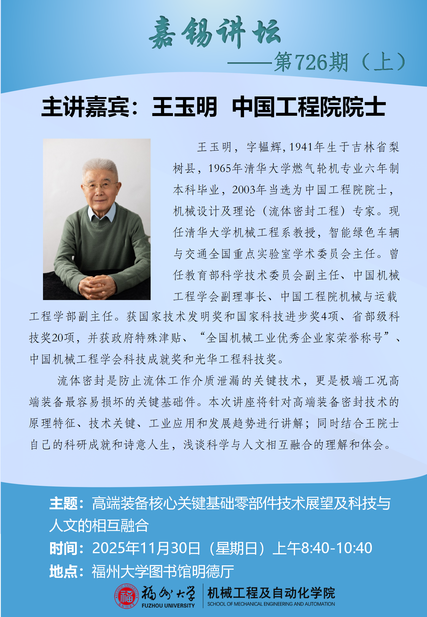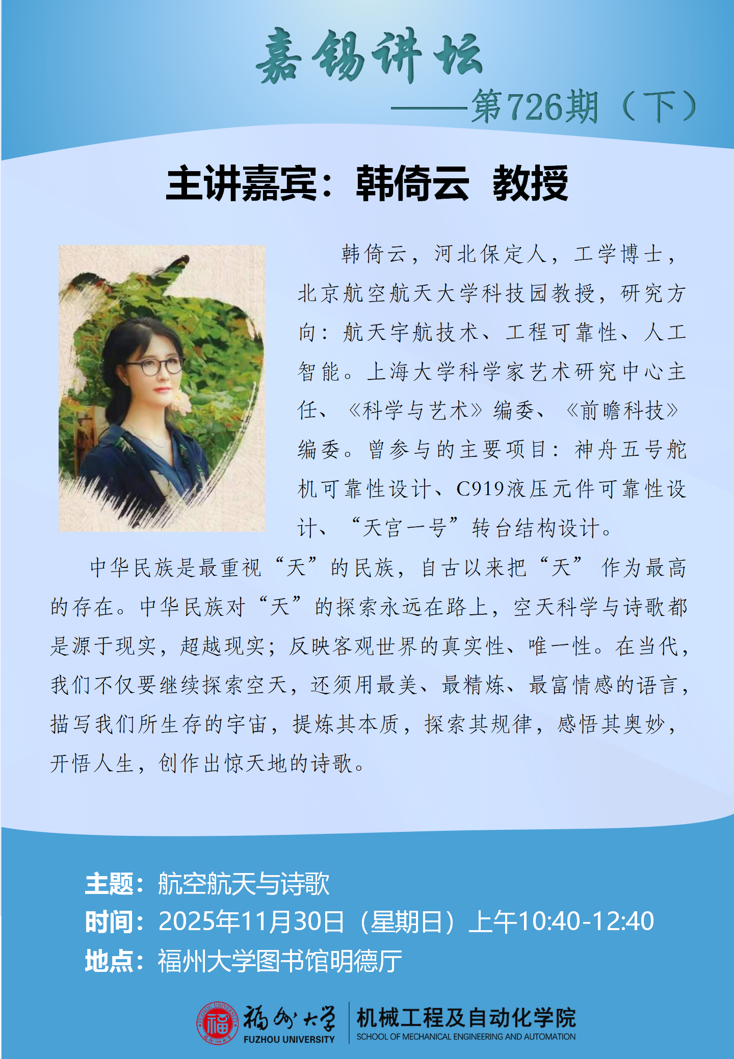 嘉锡讲坛第726期-高端装备核心关键基础零部件技术展望及科技与人文的相互融合-航天航空与诗歌